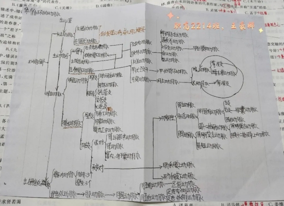 在护理教育的精密坐标系中,每位教师都是引领生命成长的星辰,每位学生都是需要个性化培养方案的独特个体。梁星君老师始终秉持“以生为本”的教育理念,将解剖学的严谨结构与护理学的人文关怀巧妙融合。在《人体解剖学》课堂上,她独创的“让骨骼会说话,让神经有故事”教学法,通过趣味口诀让复杂的人体结构变得生动可感:全身骨头虽难记,抓住要点就容易;头颅躯干加四肢,二百零六分开记;脑面颅骨二十三,躯干总共五十一;四肢一百二十六,全身骨头基本齐;还有六块体积小,藏在中耳鼓室里……面对动静脉分布等教学难点,她精心设计思维导图,帮助学生构建立体知识网络。在实训教学中,她践行“双严教学标准”:严格要求学生操作规范,更严格要求自己全程跟训。从铺床中线偏差到绷带包扎方法,从血压测量的精准定位到静脉穿刺角度,将临床护理标准操作流程(SOP)深度融入课堂教学。这种将医学严谨性与教学艺术性相结合的教育实践,不仅培养了学生精益求精的职业素养,更让护理教育绽放出生命关怀的温度。