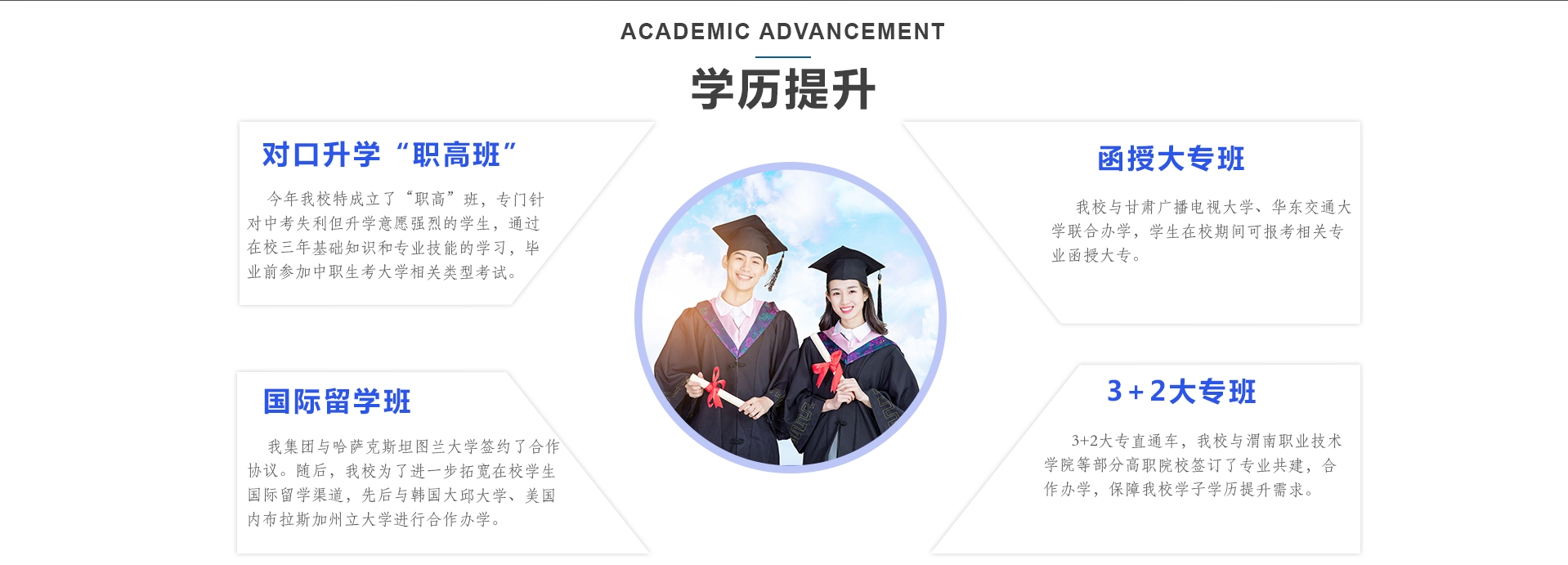 不知道是否适合学? I don't know if it's suitable for learning ? 让老师为您解答 毕业后可以拿什么学历? What degree can I get after graduation? 让老师为您解答 学完后可进哪些企业? What enterprises can I enter after ? 让老师为您解答 学成后薪资有多少? What is the salary after completion? 让老师为您解答 学费多少钱? How much is the tuition? 让老师为您解答 不知道选择什么专业好? I don't know what major to choose ? 让老师为您解答